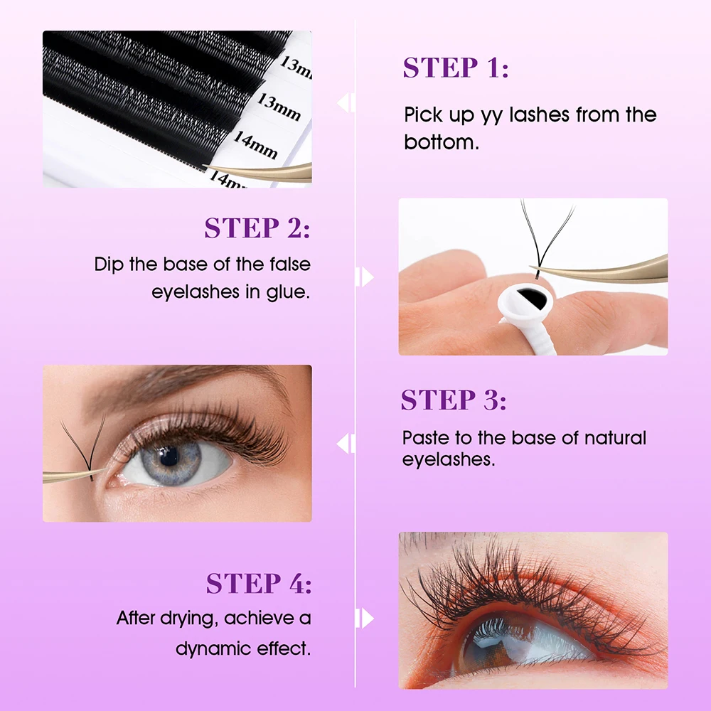 YUANZHIJIE YY-Shape Lashes are professional-grade eyelash extensions designed for salon use, offering a natural-long look with lightweight comfort. Crafted from premium synthetic fibers, these hand-made lashes feature C and D curls with a double and triple YY shape, creating soft, multidimensional volume while maintaining a natural appearance. The flexible black plastic base ensures precise application and long-lasting hold, making them ideal for stylists seeking flawless, customizable results.