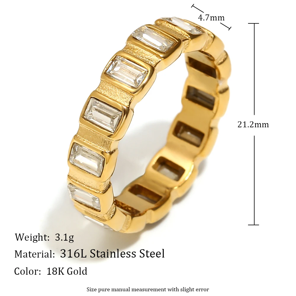 This trendy round ring features a sparkling cubic zirconia set in durable stainless steel and titanium, finished with luxurious 18K gold plating. Designed for women who love modern, minimalist jewelry, its sleek 2mm band adds a subtle yet elegant touch, making it perfect for parties, special occasions, or everyday wear.