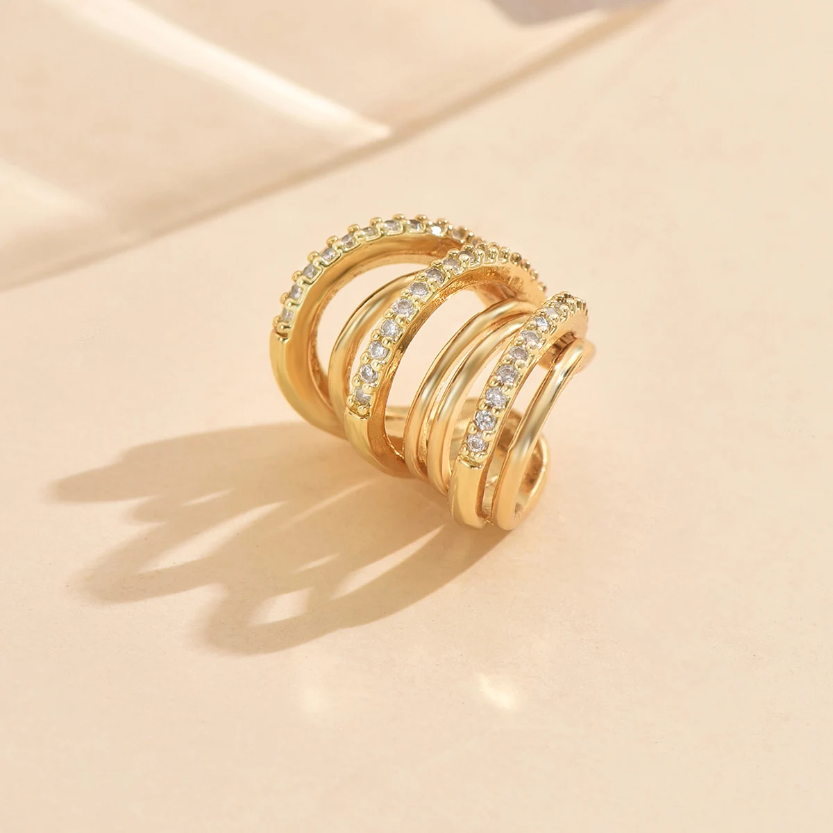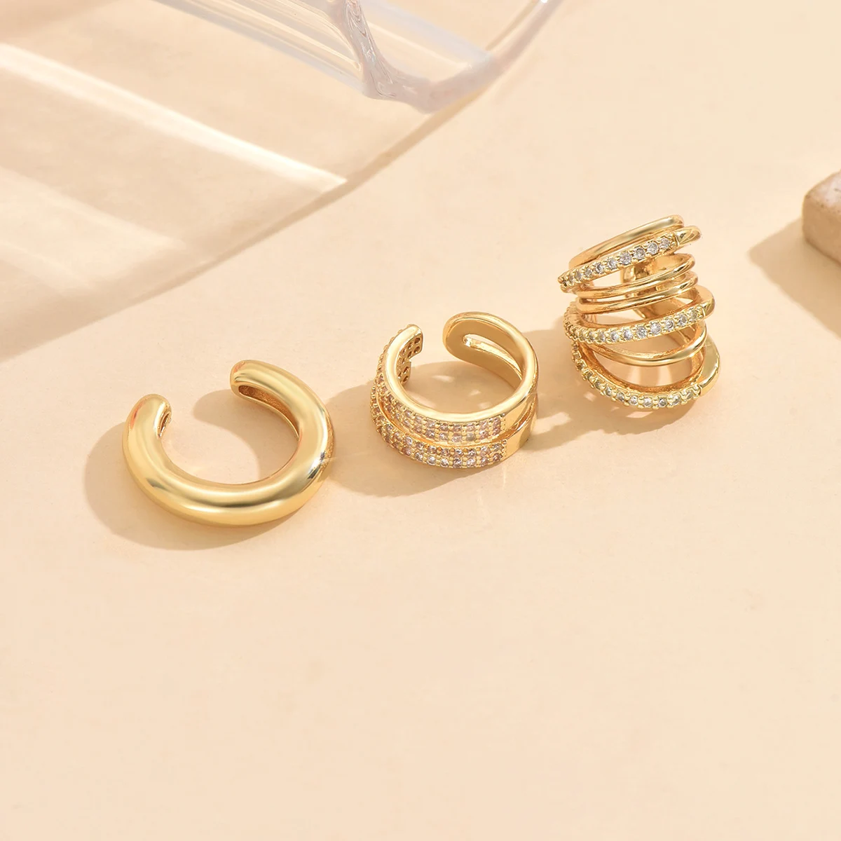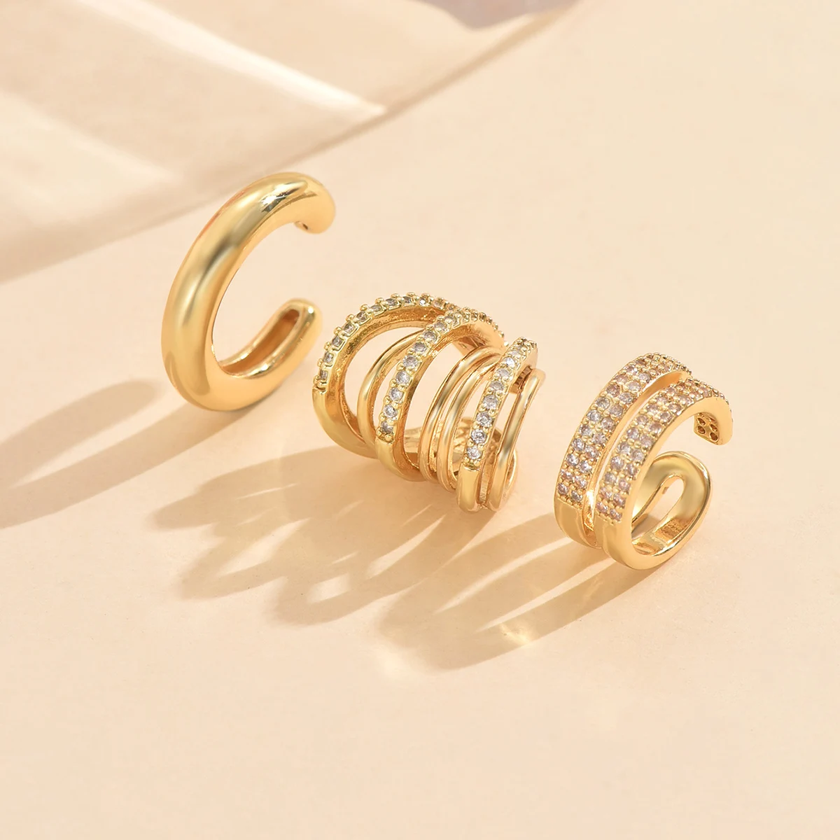 Elevate your style with this 3-Piece Zircon Multilayer Ear Cuff Set, designed for women who love trendy, non-pierced jewelry. Crafted from durable copper and adorned with sparkling cubic zirconia stones, these geometric ear cuffs offer a chic, modern look that adds a touch of glamour to any outfit. Their wave-inspired layered design creates a fashionable statement while remaining lightweight and comfortable for all-day wear.